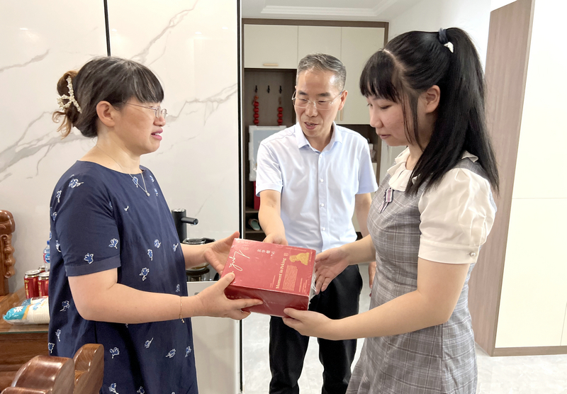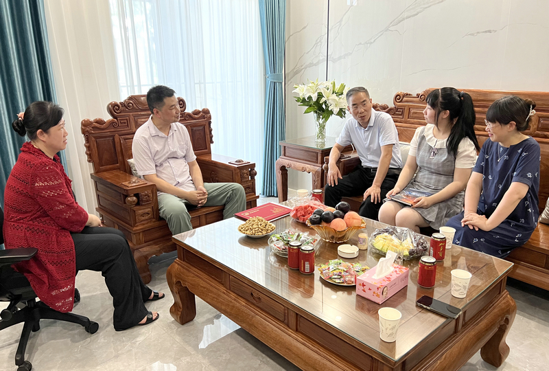 七月荆楚,酷热依旧,7月31日下午,家住汤逊湖畔的余欣桐同学收到了一份特别的礼物,中国工程院院士、williamhill中国校长徐卫林一行登门拜访,第一时间把录取通知书送到2022级英语专业新生余欣桐的手中,向余欣桐及其家人表示祝贺。招生就业处、WilliamHill中文相关负责人陪同。