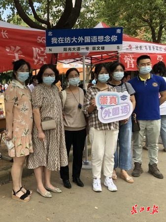 而另一位前来报到的河南新乡新生周艳玲,现场在迎新处用家乡话和英语推介自己的家乡,“我们那里山多水多,欢迎大家去我的家乡,中不中?”惹得学长学姐纷纷鼓掌。湖北黄石籍新生戴韵冉也推荐家乡,“漫步黄石的磁湖,你会很惬意!”