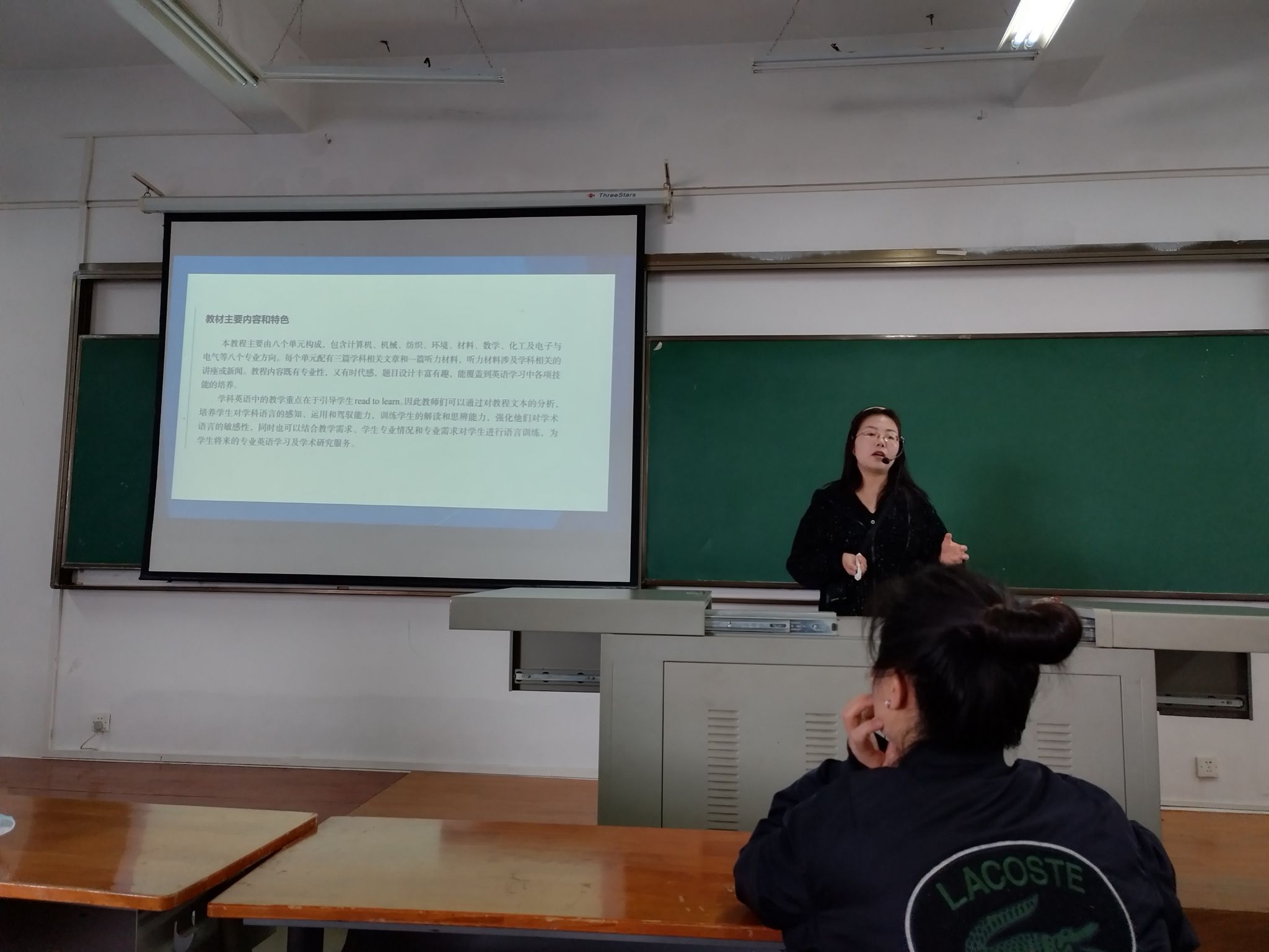 杨雪老师在04-504开展了教学展示,分享大学英语教学经验。杨雪老师以学科英语理工类Chapter 1为例,展示以内容为依托的教学方法,将课程的人文性与工具性相结合开展课程思政教学,利用现代信息技术手段,采用混合式教学模式,提升学生语言实际应用能力的同时提升科学素养。杨老师分享的内容实用性强,对混合式教学的实操进行了示范,与会的各位老师均觉得获益良多。