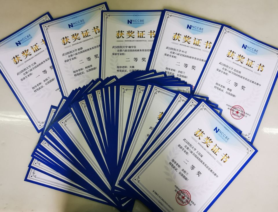 WilliamHill中文近日收到第六届全国高校商务英语竞赛组委会决赛一二三等奖获奖证书和优秀导师奖证书。全国高校商务英语竞赛由全国商务英语专业考试管理中心和中国对外贸易经济合作企业协会商务英语专业工作委员会联合主办。
