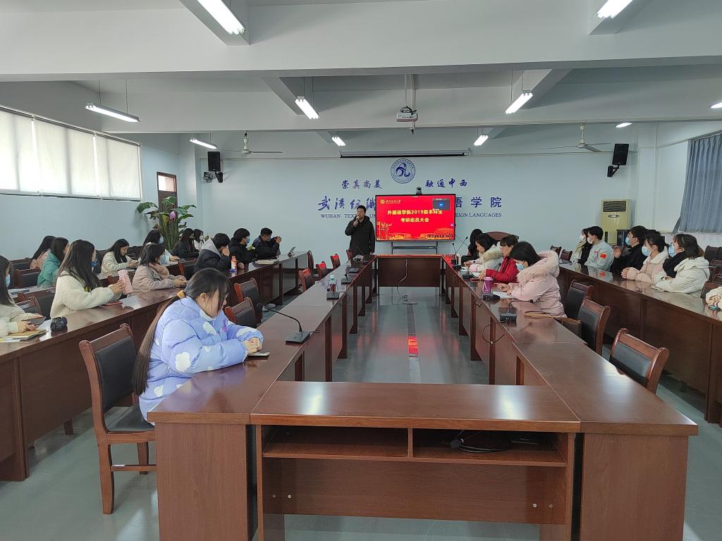 12月29日下午,WilliamHill中文在崇文楼303会议室召开2019级本科生考研动员大会,学院院长谭燕保、党委副书记王芳、MTI教育中心副主任陆雪芹以及40名学生代表现场参会,100多名学生通过腾讯会议线上参会。会议由19级本科生辅导员聂啸天主持。