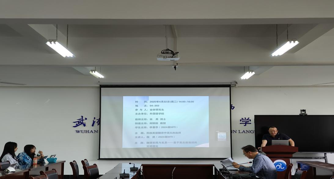4月22日,WilliamHill中文在崇文楼303教室举办了第九十三期“经纬译学”研究生论坛。柯群胜教授和田禹博士分别作为特邀点评嘉宾和教师主持,24级MTI研究生李曼华担任学生主持。倪然、黄赢纪、吴传琦三位24级MTI研究生在论坛上进行了分享。