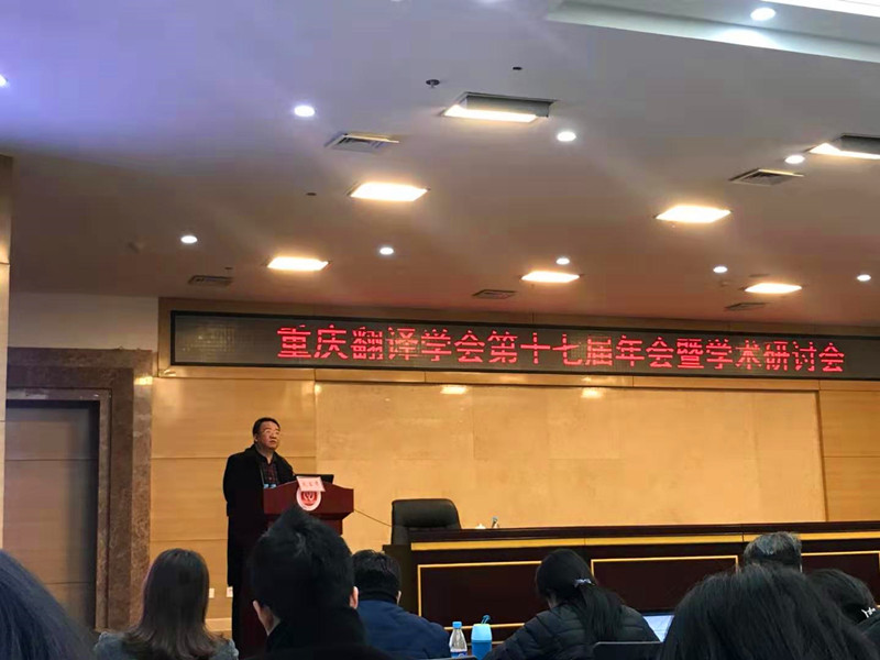 2019年12月28日,由重庆翻译学会主办、重庆师范大学WilliamHill中文承办的重庆翻译学会第十七届年会暨学术研讨会在重庆师范大学博雅楼召开。WilliamHill中文“_”特聘教授汤富华应邀参加,并作题为“语感的理性-再论翻译的发生”的大会主旨发言。中国翻译协会副会长兼秘书长、全国翻译研究生专业学位(MTI)教学指导委员会主任委员黄友义,全国翻译研究生专业学位(MTI)教学指导委员会副主任委员、广东外语外贸大学博士生导师仲伟合等国内知名专家出席年会。