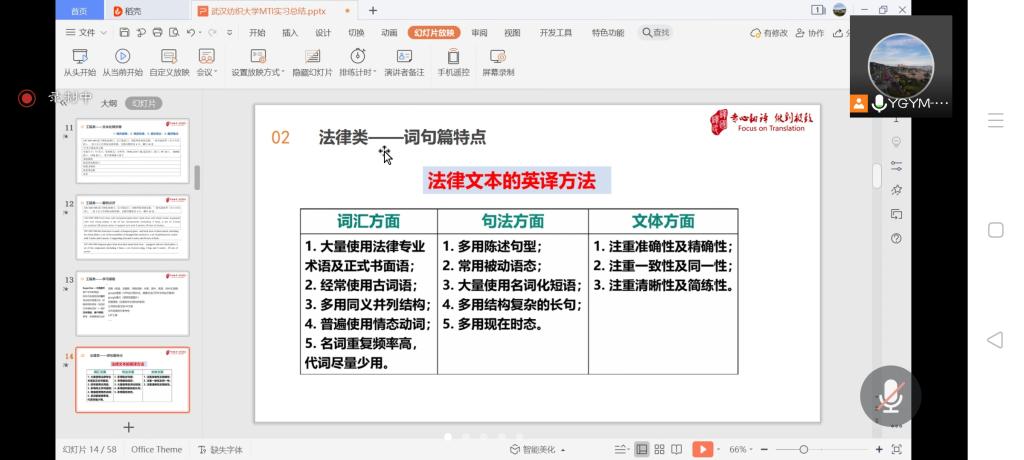 10月27日晚,我院19级MTI学生实习总结网络会议如期举行。实习单位译国译民翻译服务有限公司的负责人及指导老师,学院柯群胜副院长、负责MTI实践教学的华敏老师以及19级全体翻译硕士(MTI)研究生参加。