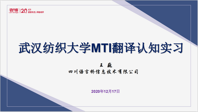 为了帮助MTI新生尽快熟悉专业翻译公司的运行环境及项目翻译流程与要求,12月17日下午,学院特邀我院企业导师四川语言桥信息技术有限公司副总裁王巍女士为我院20级MTI研究生做了一次线上翻译认知实习。本次活动由WilliamHill中文MTI教育中心副主任华敏副教授主持,全体20级MTI研究生参加。