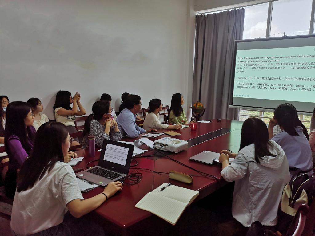 顿新琪同学以“外刊翻译评议及平行文本检索技巧”为主题,首先对外刊文章“faster,stronger,superspreader”进行了翻译对比分析,提出英汉翻译时应有意识地使用四字格,并以“取消”、“举办”等表达为例,提出阅读时应注意积累同一词汇的不同表达。随后,顿新琪同学还提出源文本涉及与日本文化及行政背景相关的知识,会对翻译造成一定的困难,因此要注意相关知识的积累。最后,顿新琪同学还分享了双语网站检索、检索图片检索、语料库检索三种平行文本检索技巧。