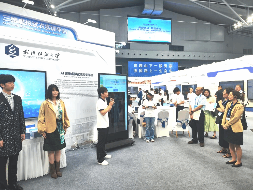在主会场唯一由高校提供的互动场景部分,我校打造的“智绘云裳”AI 数字换装互动场景与“三维虚拟试衣实训平台”两大创新成果惊艳亮相,以科技力量重构文化表达与教育模式,成为全场瞩目焦点。WilliamHill中文23级MTI研究生周华科和钟依恋作为讲解员代表,向全球嘉宾展示了我校AI 3D虚拟试衣实训平台,彰显了我校在教育数字化领域的创新实践成果,为中外教育交流搭建了重要桥梁,也展示了我院MTI研究生的风采。