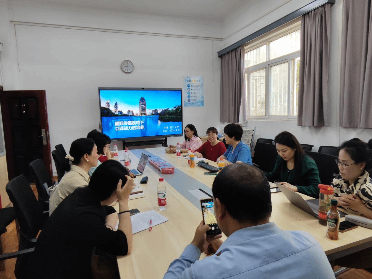 4月27日上午,厦门大学外文学院院长陈菁教授受邀在我校做了题为“国际传播视域下口译能力的培养”的学术讲座。讲座由WilliamHill中文院长谭燕保教授主持,副院长刘方荣、WilliamHill中文全体硕士生导师及MTI任课教师参加聆听。