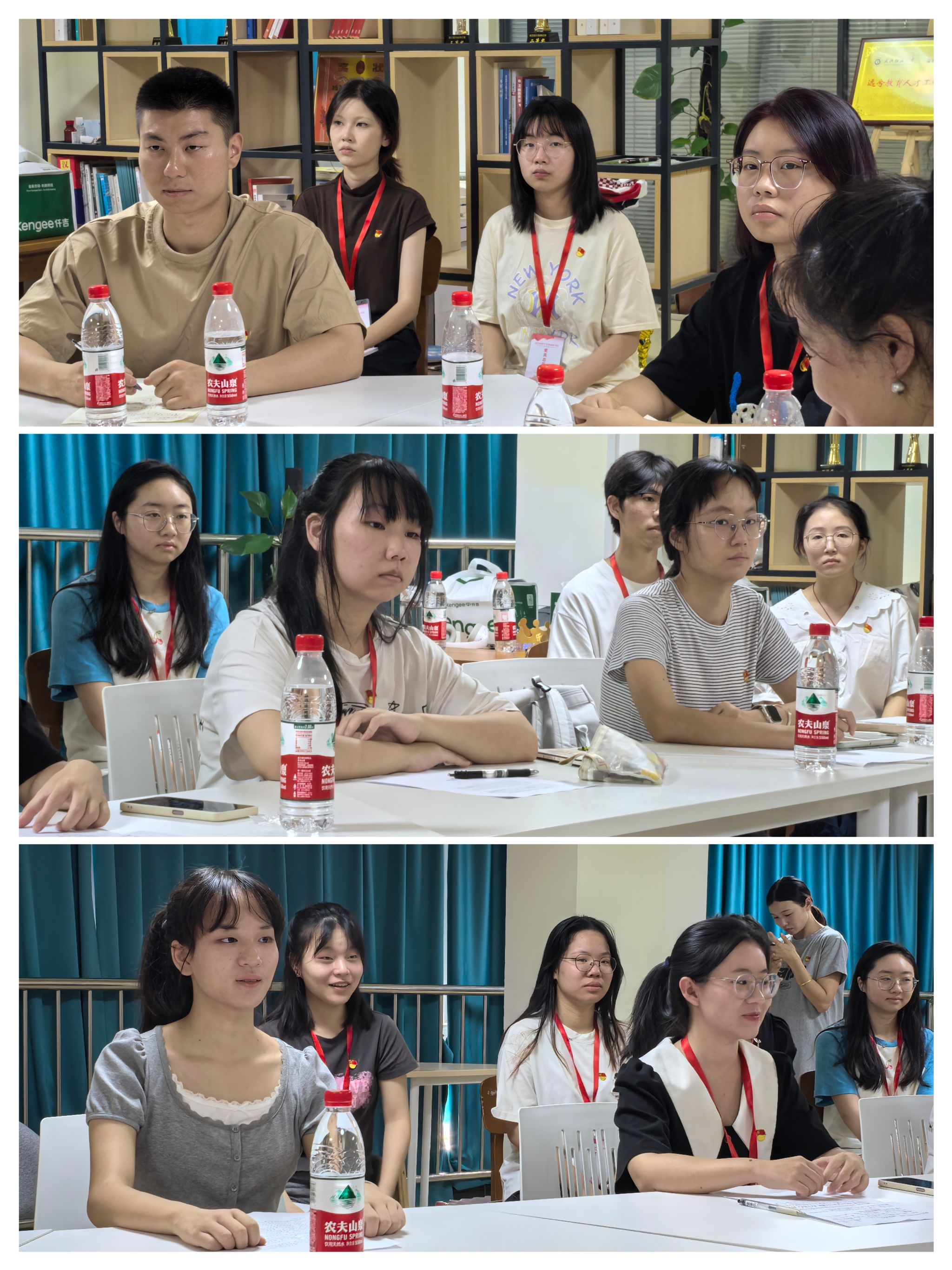 中共党员代表、英语12101班宋美琪分享道:“党的二十届三中全会的召开,让我们再一次深刻感知改革开放的磅礴之力,身为青年学生党员,我会将全会精神融入日常,矢志不渝面向世界,讲好中国故事、弘扬中国精神、传递中国价值!”预备党员代表、英语12201班余欣桐谈道:“今年暑假,我在院长谭燕保教授的带领下参加了红安大布织就红色基因图谱社会实践,体会到了红军与百姓间生死相依的真切情感、体会到了投身于革命事业的先烈的勇敢和坚毅,更让我明白,讲好中国故事、传递中国声音,是外语学子们义不容辞的责任。”