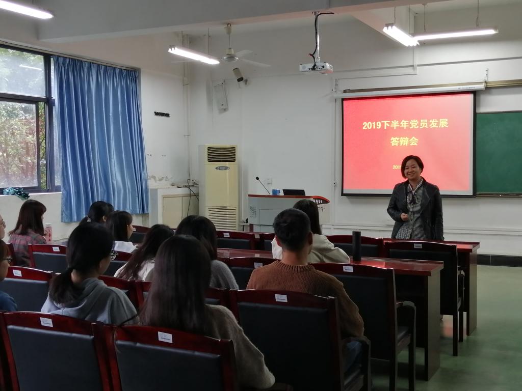 11月8日,我院在04-303会议室举行2019年下半年党员发展对象公开答辩。学院党委副书记王芳参与指导此次答辩。会议由英语学生党支部书记卫周瑶老师主持,入党积极分子代表参加此次活动。