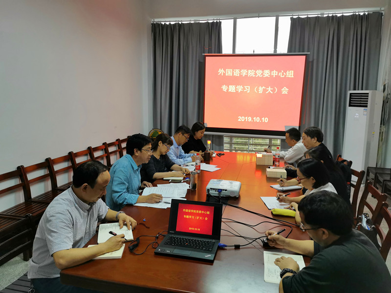 10月10日下午,学院党委中心组在崇文楼313会议室开展十月份中心组政治理论学习活动。学院党委书记胡中原,院长谭燕保,副院长柯群胜、罗绮伦,副书记王芳,学院党委委员和党支部书记参加了此次集体学习。学习活动由胡中原书记主持。
