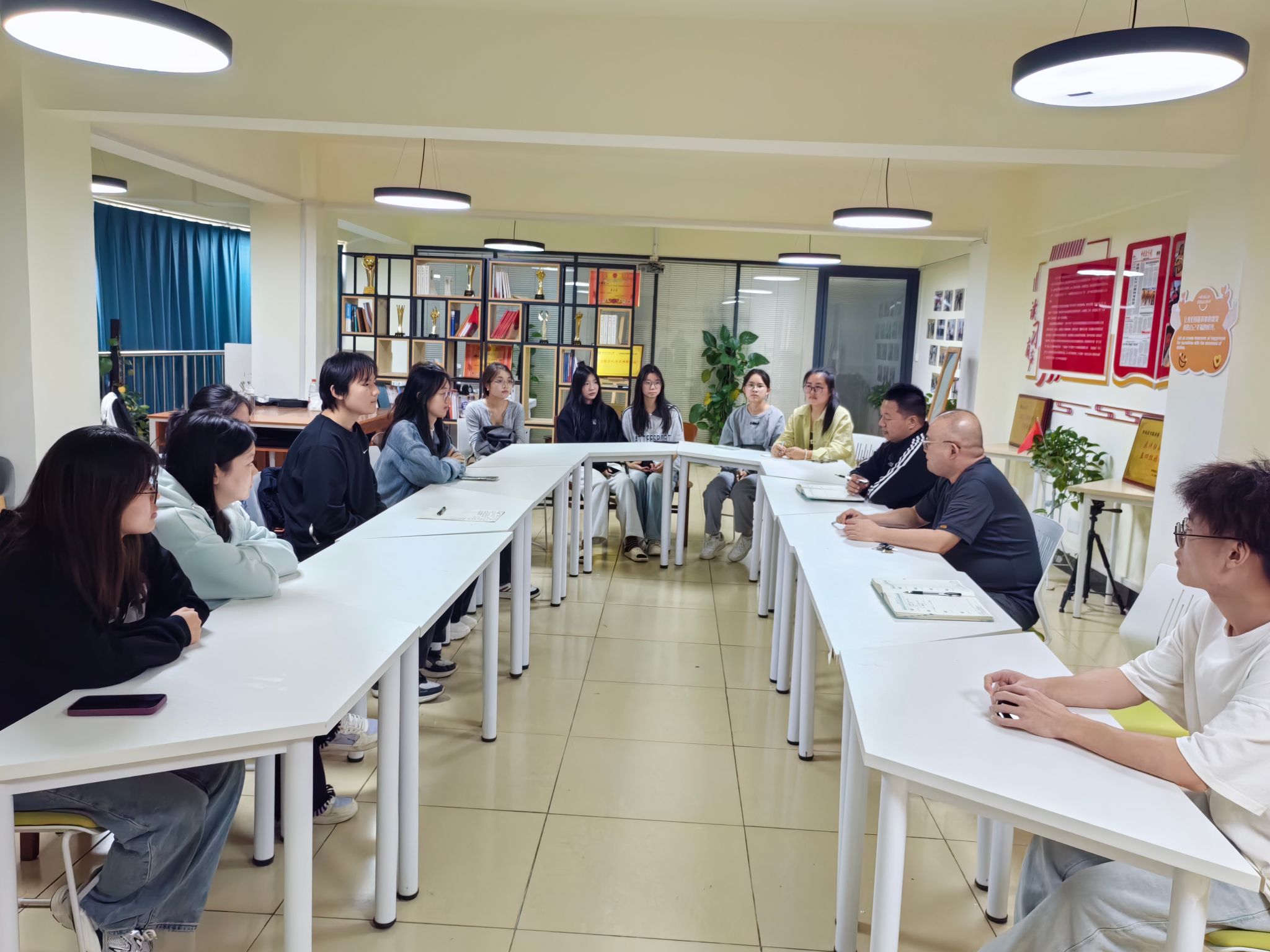 10月8日和9日中午,学院在一站式学生社区活动中心先后组织新生学习委员和新生心理委员座谈会,党委副书记彭阳慈航和年级辅导员参加。与会同学依次就班级同学课堂氛围、学风建设、心理状况和面临问题进行了交流,彭阳慈航对同学们提出的问题一一进行答复,提出了加强学风建设、完善日常管理的具体举措,并重点对新生班级指出,当前是大学生涯开局起步的重要阶段,要严格早晚自习制度落实,开展如英语角等形式多样的活动,提升学习兴趣,激发学习动力,养成良好习惯。同时,还要尽快适应融入学院的管理网络,发挥好信息员作用,落实好课堂考勤和晚报平安制度。