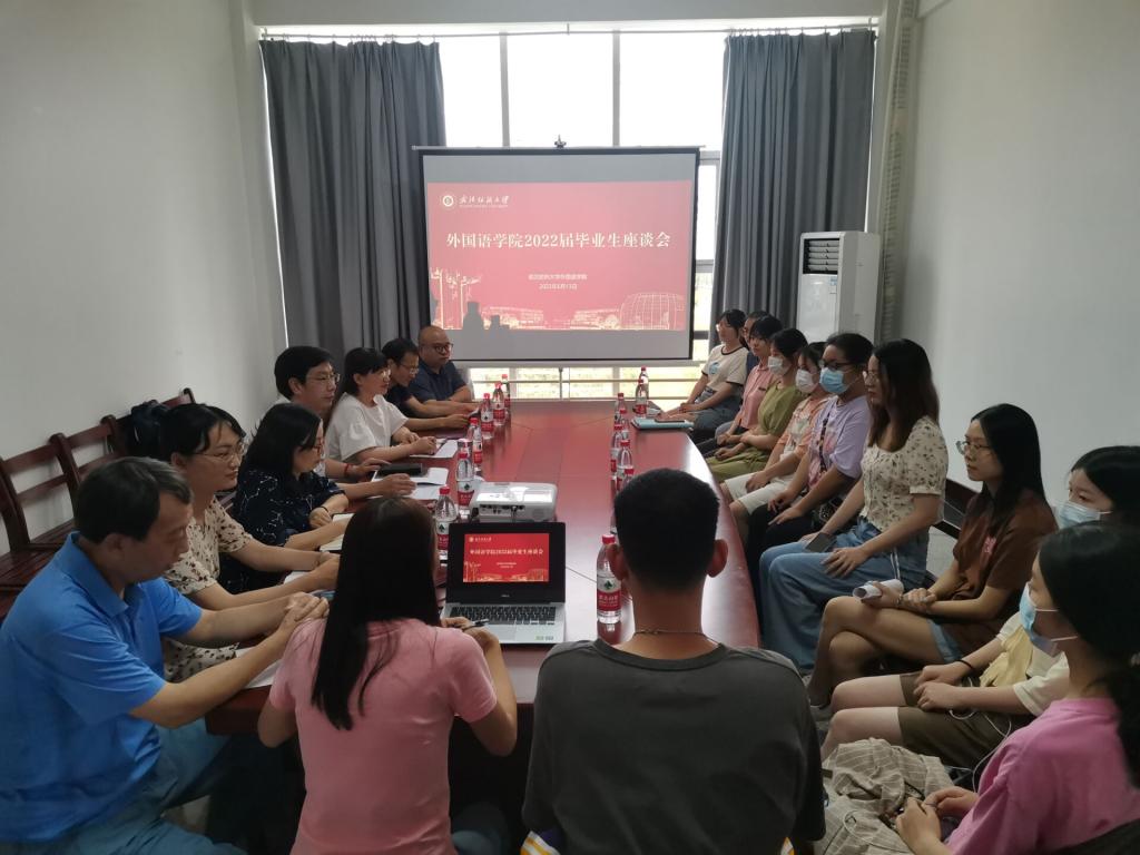 6月13日下午,WilliamHill中文在崇文楼313会议室召开2022届毕业生座谈会。学院党委书记胡中原,院长谭燕保,副院长刘方荣,学院党委副书记彭阳慈航、英语系主任唐娴、班主任代表曹火群、任课教师代表黎健以及部分毕业生代表参加,会议由毕业班辅导员甘新敏主持。