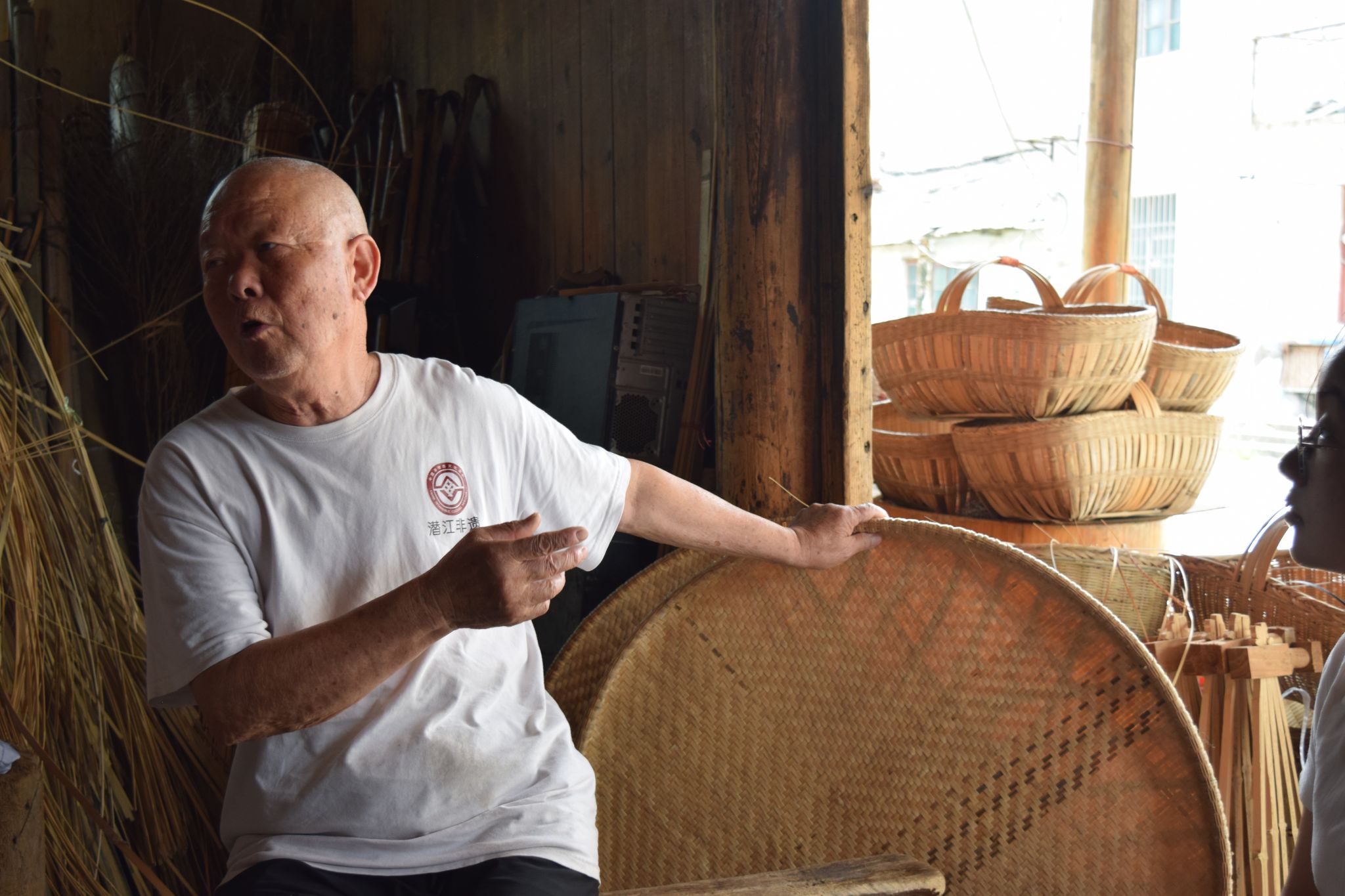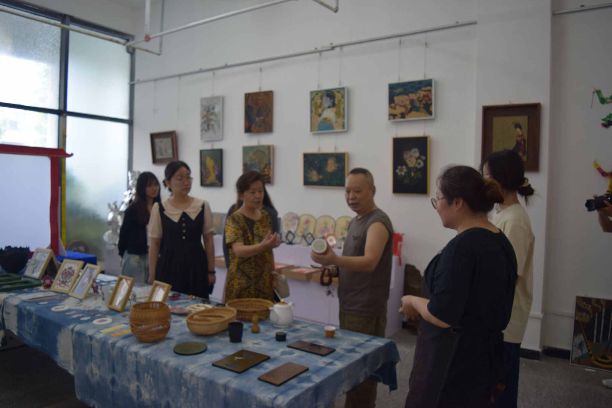 在访谈过程中,田委员建议:传统竹编需要转型发展,可以考虑开发小型文创产品,比如符合年轻人审美的竹编挂件、摆件、书签等,这样既能降低学习门槛,又能拓展新市场。李主任也说道:年轻人的思想确实能为非遗传承注入全新活力。交流现场气氛活跃,非遗的魅力感染了每一位同学。