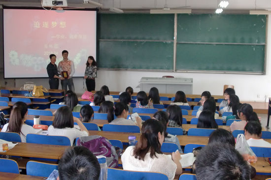 近日,外语学院首位创业素质导师、2002级优秀校友易林超授聘仪式及创业指导讲座在阳光校区03—317教室举行。外语学院分党委陈国新书记、卫冬妹副书记、全体辅导员和怀揣创业梦想的100余名学生参加了仪式并聆听了讲座。仪式由卫冬妹主持。