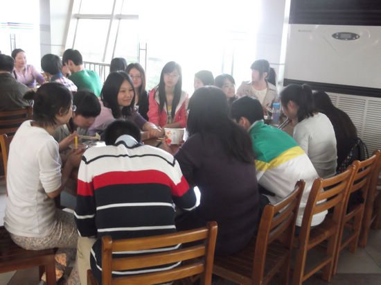 聚餐交流中,老师与同学们就大学生活时间分配、专业学习技巧、学业长期规划、职业选择等问题做了具体的分析和指导。曹火群教授针对有的同学提出的怎样确定学习目标侃侃而谈。他说从现在开始就应给自己确定好目标,比如考研、保研、出国、找工作等,要做好充分的心理准备,即自己应该干什么,怎么干,这个问题要思考清楚并制定科学的学业规划付诸行动。陈奇敏老师建议同学们一定要充分利用大学里丰富的教学资源,如图书馆、自主学习室、语音室、素质导师等学习件资源,把握光阴,努力学习,全面提高自己的专业素质。潘寅老师建议语言专业的同学们一定要多阅读,要广泛涉猎各类书籍,特别是英文小说,全面提交自己的听说、读、写、译综合语言学习和运用能力。辅导员陈老师强调同学们如果加入到学生组织中锻炼成长,就应该善始善终、无怨无悔。无论是口才、办事能力还是为人处事方面大家都应通过参加各种活动来锻炼自己,而学生组织正好给同学们提供了一个很完美的舞台。