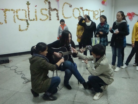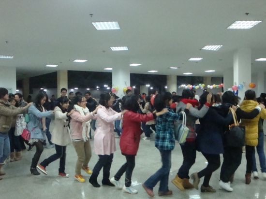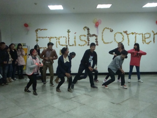 英语角开始时,WilliamHill中文12级新生以一曲《江南style》劲爆热舞high翻全场。领舞者谷梦春以火辣的舞姿顿时点燃了全场同学的热情,燃起了全场的热烈氛围。外教Megan和Rebecca以及在场的诸多同学都被他的激情所感染,纷纷参与其中,与表演者共舞。外语协会准备的手语舞蹈《感恩的心》,更让同学们感受到了一股浓浓的感恩之情。