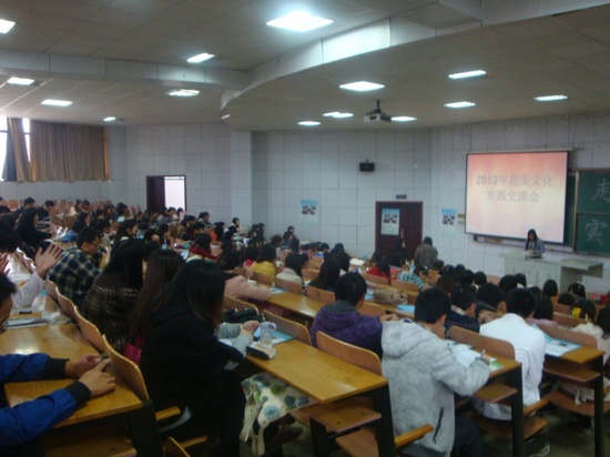 11月8日下午,第六届外语文化节系列活动之赴美文化实践经验交流会在07-T302举行。湖北省教育厅对外交流处陈丽华主任、北京外企服务集团(FESCO)优势办吴可非老师和WilliamHill中文分党委卫冬妹副书记亲临现场作赴美实践活动做指导。2012年优势赴美实习学员孙钰凡和江紫薇等同学与现场几百名学子交流自己赴美实习中的收获。