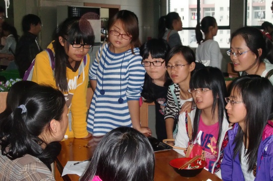 初次会餐,新生们被老师们甜美的笑容所感染,被老师的亲切关怀所感动,在老师面前毫不羞涩,争相上前与老师并肩而坐,欢乐进餐,轻松交谈。老师们亲切地询问同学们,入学后能否适应新的环境、对学校和学院印象如何、有什么意见和建议、对专业学习感受如何等等。当听到同学们对校园环境、师生面貌、专业学习等方面一致肯定并情绪愉悦时,老师们也感到非常欣慰。针对同学们提出的问题,老师们也给予了悉心解答。潘老师针对专业学习对同学们进行指导,他鼓励大家要广泛涉猎各类书籍,特别是英文小说,形成全面学习与专项学习相结合的专业训练方法。丁老师为新生介绍了大学生活中所需要注意的几点问题,建议同学们要充分利用大学里丰富的资源,如图书馆、自主学习室、师资等软硬件条件,充分学习,全面提高。
