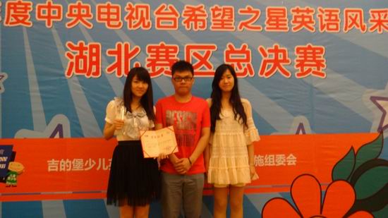 在今年6月29日的中央电视台“希望之星”英语风采大赛湖北省赛区总决赛中,王梦恬同学以季军的好成绩挺进全国决赛;同时,我院英语11101班韩路及英语11101班高凡凡两位同学在英语风采大赛湖北省赛区决赛中也有良好的表现。我校选手在各类英语赛事中展现风采,屡获佳绩,为学校争得了荣誉。她们不仅充分展现了我校英语专业学生的风采和实力,也展示了我校英语专业教学改革取得的进展和成绩。