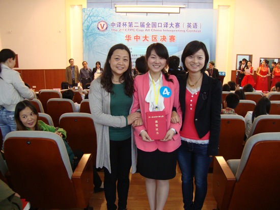 另悉,3月24日,王梦恬同学在“中译杯”第二届全国口译大赛湖北省决赛中获二等奖,英语091班李睿荣获湖北赛区三等奖的好成绩。4月14日,王梦恬同学在“第四届海峡两岸口译大赛”湖北赛区中获三等奖。我校选派选手近期在各类英语专业大赛中沉着冷静、不畏强手,表现突出,取得不俗成绩,为学校赢得了荣誉。她们不仅充分展现了我校英语专业学生的风采和实力,也展示了我校英语专业教学改革取得的进展和成绩。(撰稿 曹婷 陈新川)