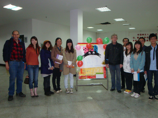 此次“一院一师一星——英语角走进学院”活动的第一站——管理学院英语角现场十分热烈。同学们自由分组,进行英语口语交流;WilliamHill中文外教Bernie和Sandy与同学们共同分享了异域文化及他们对中国的印象;专业教师彭姿就英语学习问题为同学们作现场指导。竞争激烈的“英语之星”的评选环节更是激发了现场同学的热情。经过才艺比拼、即兴演讲、句子接龙三个环节的激烈比赛后,工管类11102班余媛圆同学被评为管理学院 “英语之星”。