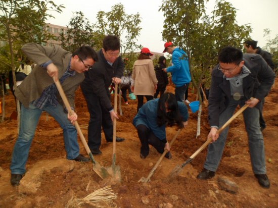 学院领导陈国新书记、卫冬妹副书记,院办、院学工办老师也积极加入到同学们的植树大军中。植树间隙,陈书记说:“十年树木,百年树人,相信通过我们大家的辛勤浇灌,在不久的将来,我们所植的树木一定会郁郁葱葱,给阳光校区带来浓浓的绿色”。