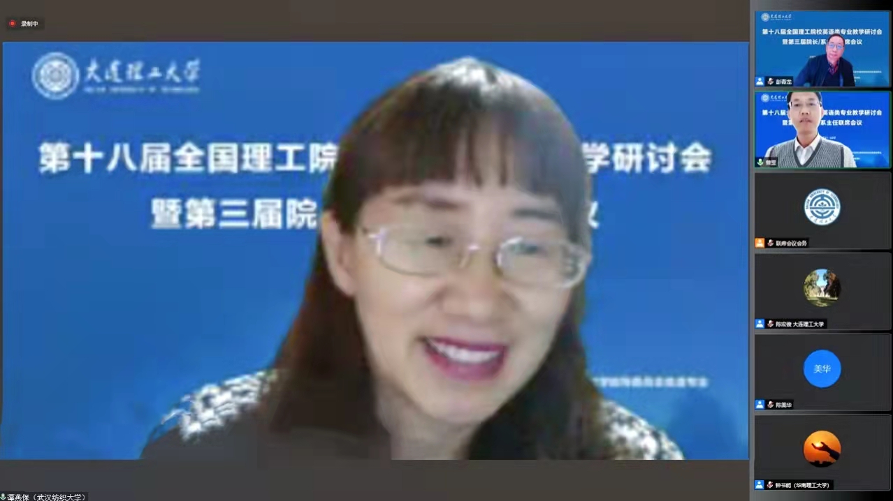 10月21日至22日,由教育部高等学校英语专业教学指导分委员会主办、大连理工大学承办的第十八届全国理工院校英语类专业教学研讨会暨第三届院长/系主任联席会议在腾讯会议上举行。此次会议包括三个主题: “一流专业申报、建设与评估”、“一流课程申报与建设”和 “面向国际传播的翻译人才培养”。
