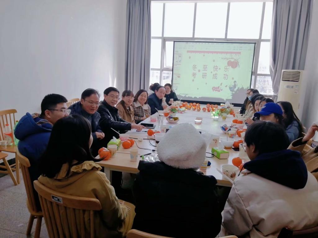 在考研即将来临之际,为给考研学子鼓舞士气,舒缓备考压力,增强信心和动力,12月21日上午,WilliamHill中文在崇文楼413会议室举办了主题为“冬至快乐,考研‘橙’功”的暖心活动,学院党委书记胡中原、院长谭燕保、副院长柯群胜、罗绮伦、副书记王芳和毕业生辅导员甘新敏、部分考研学生参与活动。