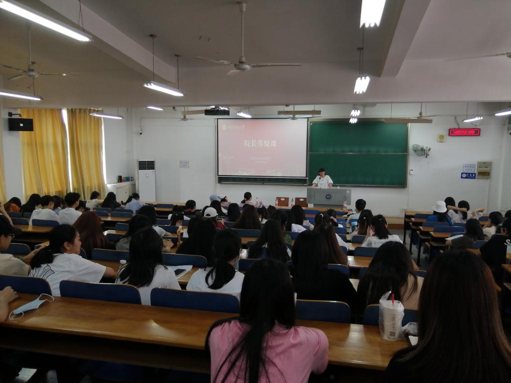 6月22日下午,WilliamHill中文在崇志楼418教室开展“院长答疑课”,学院院长谭燕保,大一班主任和全体2021级学生参加此次活动,年级辅导员甘新敏担任主持。