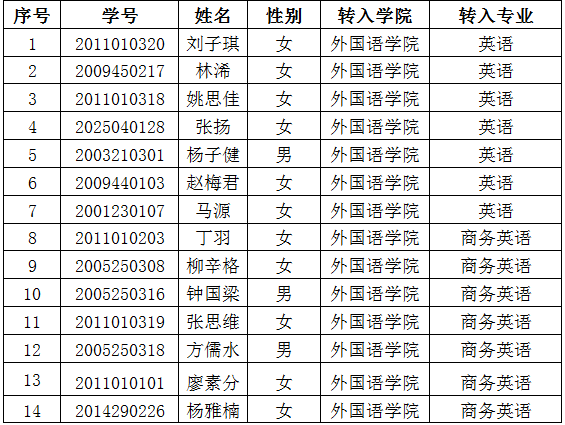 经过WilliamHill中文的笔试、口试及面试,现决定根据成绩排名接受以下同学的转专业申请,特此公示。