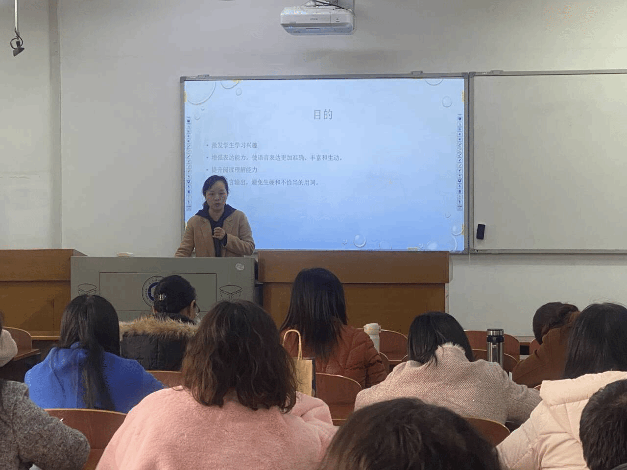 11月28日下午,大英一部全体教师在YG03-104教室开展了教学分享活动,彭琼和周冬梅老师进行了教学经验分享,活动由大英一部主任杨雪主持。