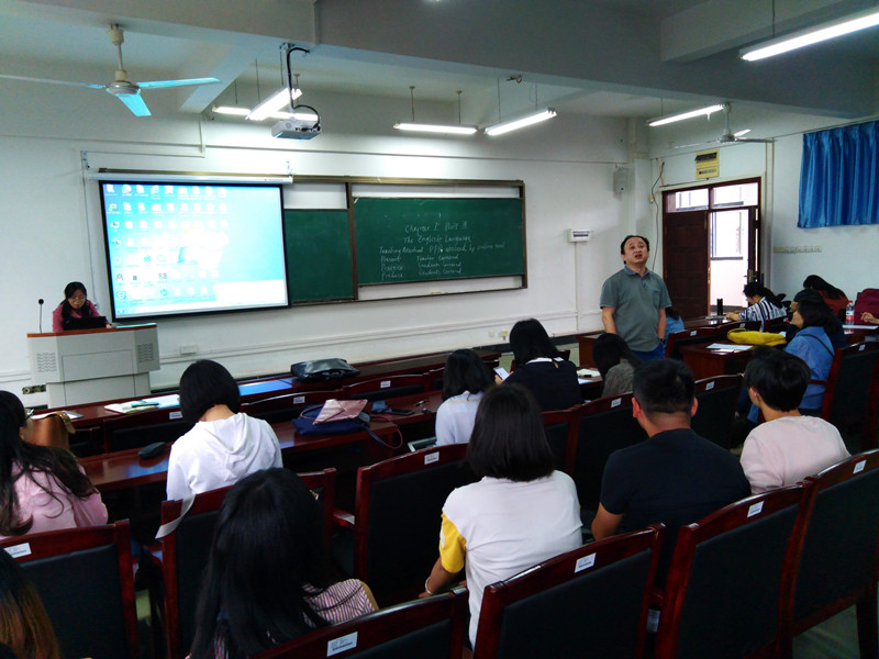 讨论结束后,罗绮伦副院长对本次课堂观摩活动进行了总结,也分享了他对“英语语言拓展”课程教学的深度看法,并鼓励老师们在课余多进行教学讨论与交流。