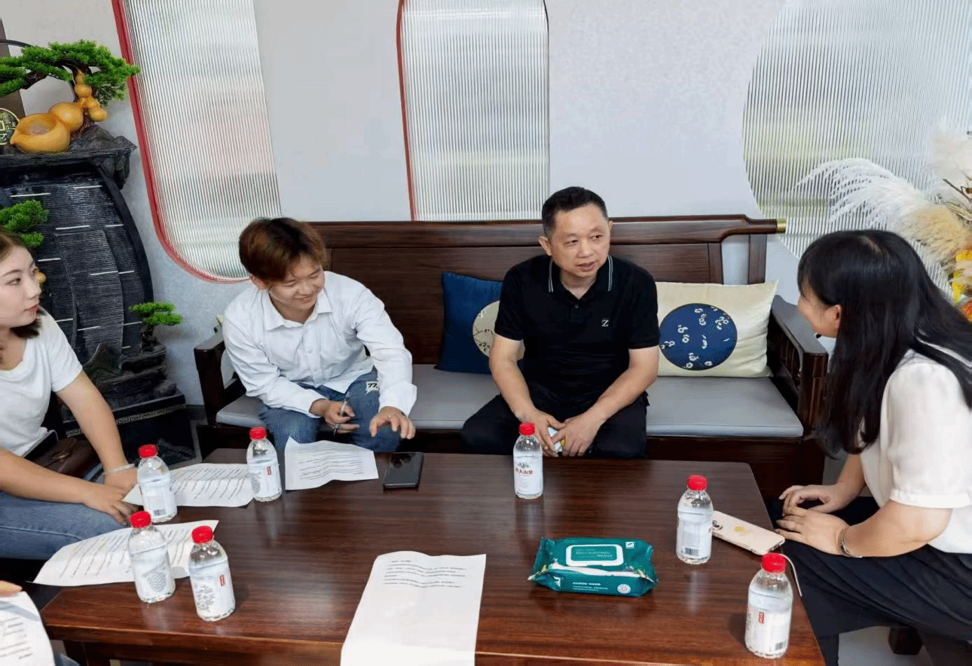 参观结束后,实践队与孙经理围绕 “实体商贸与专业适配” 展开深度问答交流。针对队员们提出的 “汉派服装如何在本地市场突出特色”“服装企业日常商务对接的核心环节”“商务相关专业学生在实体商贸领域的发展方向” 等问题,孙经理结合丰富的招商工作经验与行业实际案例逐一解答,将课本上的商务理论转化为可感知的行业实践,让队员们切实理解专业知识在实体商贸中的应用场景。