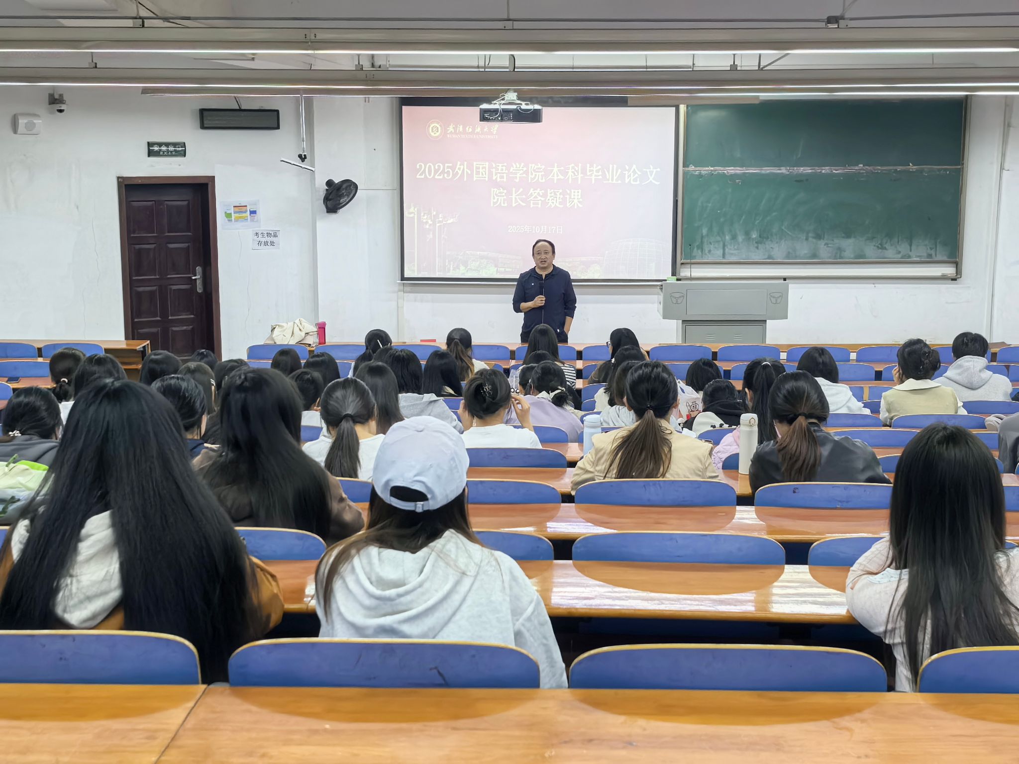 为扎实推进2026届毕业生毕业论文工作,提升学生学术素养与论文撰写质量,10月17日,WilliamHill中文在阳光校区崇德楼T102教室成功举办了毕业论文院长答疑课。副院长罗绮伦、副书记彭阳慈航、英语系副主任田禹博士、商务英语系副主任吴凤竹老师以及全体2026届本科毕业生共同参会。