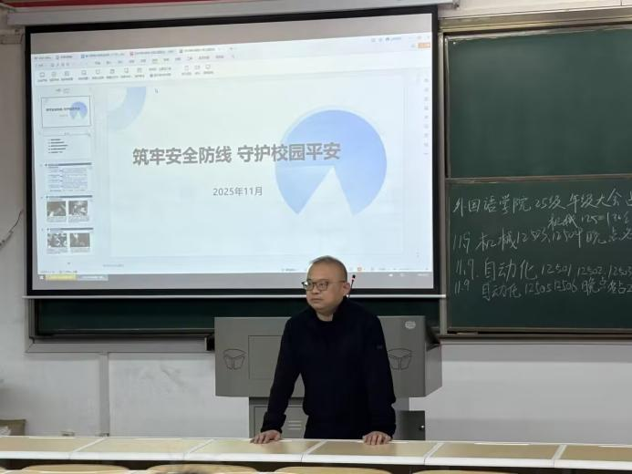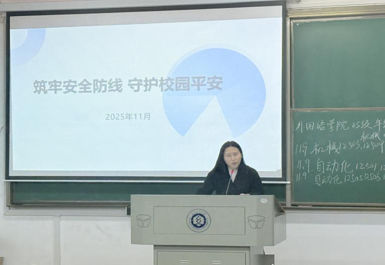 为扎实推进校园安全体系建设,精准引导新生做好学业规划,11月9日WilliamHill中文在阳光校区举办安全教育活动。本次大会以“筑牢安全防线,守护校园平安”为核心主题,学院党委副书记彭阳慈航、2025级辅导员石亚楠及2025级全体学生参会。