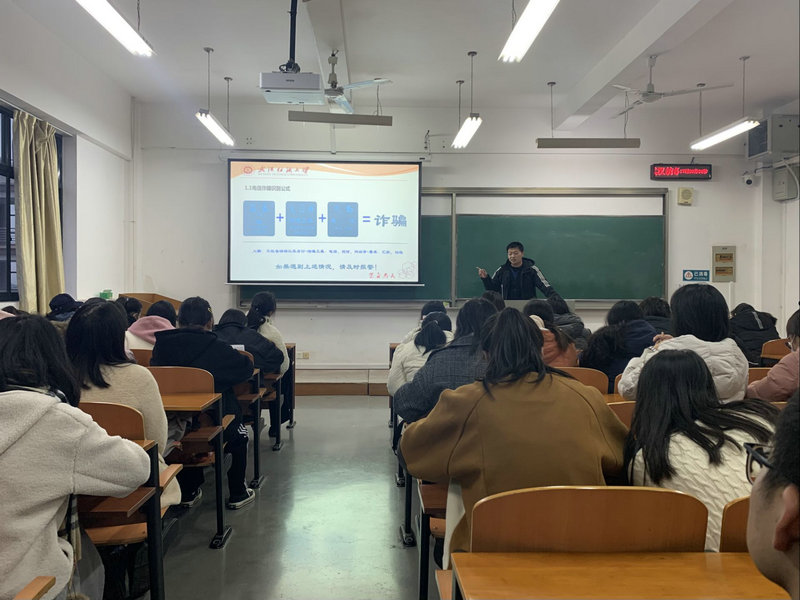 聂啸天重点就“什么是电信诈骗”、“电信诈骗的常见形式”、“如何识别防范电信诈骗”、“上当后的补救措施”四个方面展开了安全教育,他特别强调,现在正值年终岁尾,正是电信诈骗的高发频发时期,同学们要切实树牢安全意识,防患于未然,在电信诈骗出现时就敏锐的识别出,采取果断措施把自己的财产和信息保护起来,防止事后亡羊补牢。