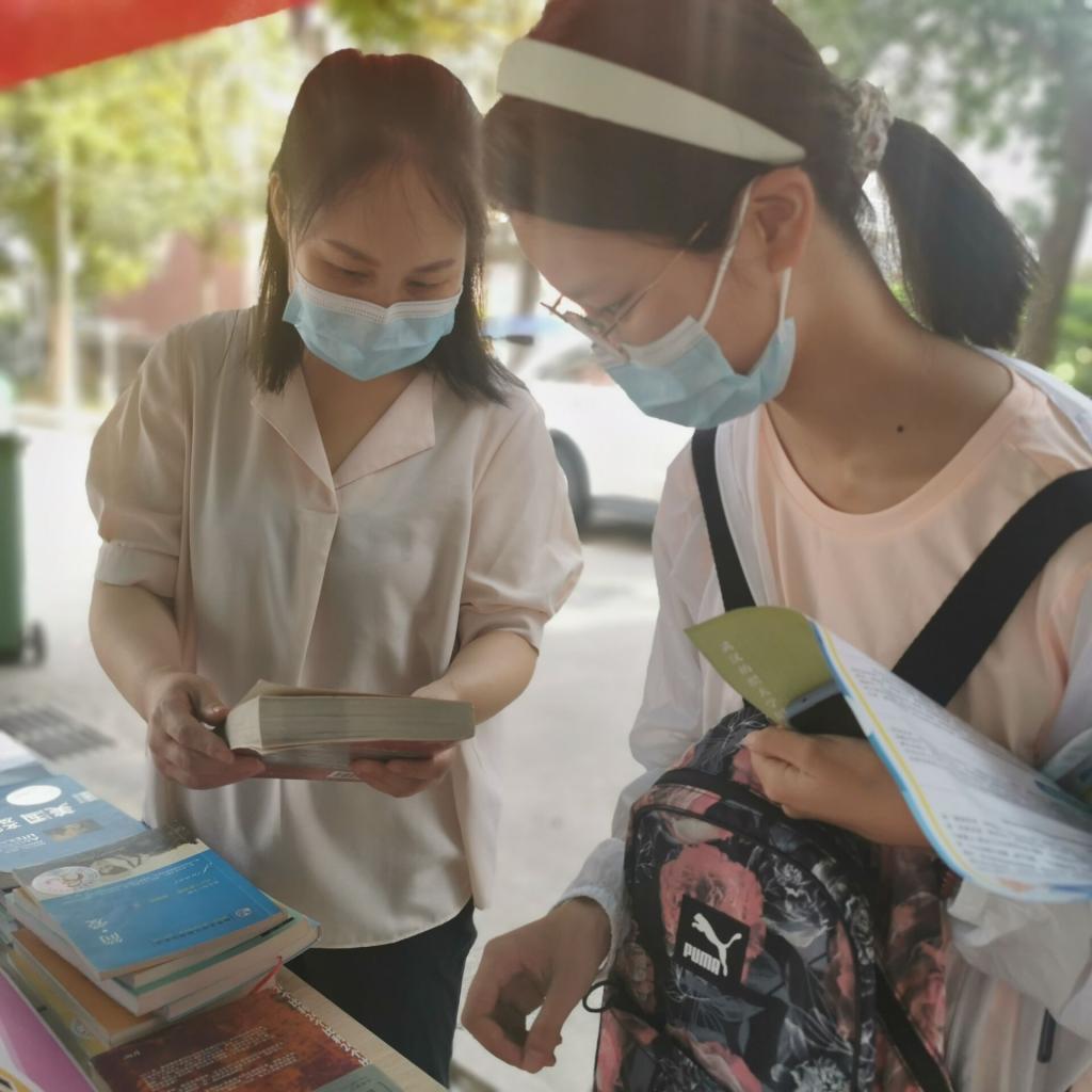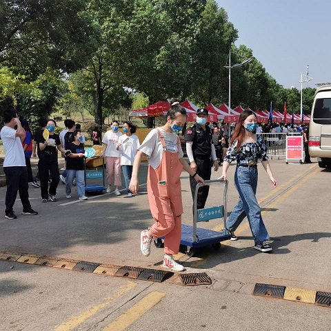 高年级的在校生们不仅为学弟学妹们每人捐赠了一本自己读过的好书,还特地在上面贴上了印有学院标志的圆形书贴,饱含象征意义。为达到防疫要求、办好让学生和家长都满意的迎新活动,早在九月初,学院就开始在全院范围招募迎新志愿者,迎新队伍里不仅有学院领导班子成员,还有职能部门成员和专业教师,学院还安排了一对一迎新志愿者,确保每位新生都有志愿者全程协助入学。迎新工作开启第一天,学院的领导班子早早地就带领志愿者老师和学生们积极出动,蹲守在各个迎新点等候新生的到来。学院提前为志愿者们订制了一批具有学院特色的口罩,辅导员聂老师说:“戴上特制口罩后,新生就能更快地找到我们的志愿者了!”