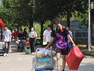 校园里的“守望者”——志愿者学生迎着太阳等候即将下车的新同学