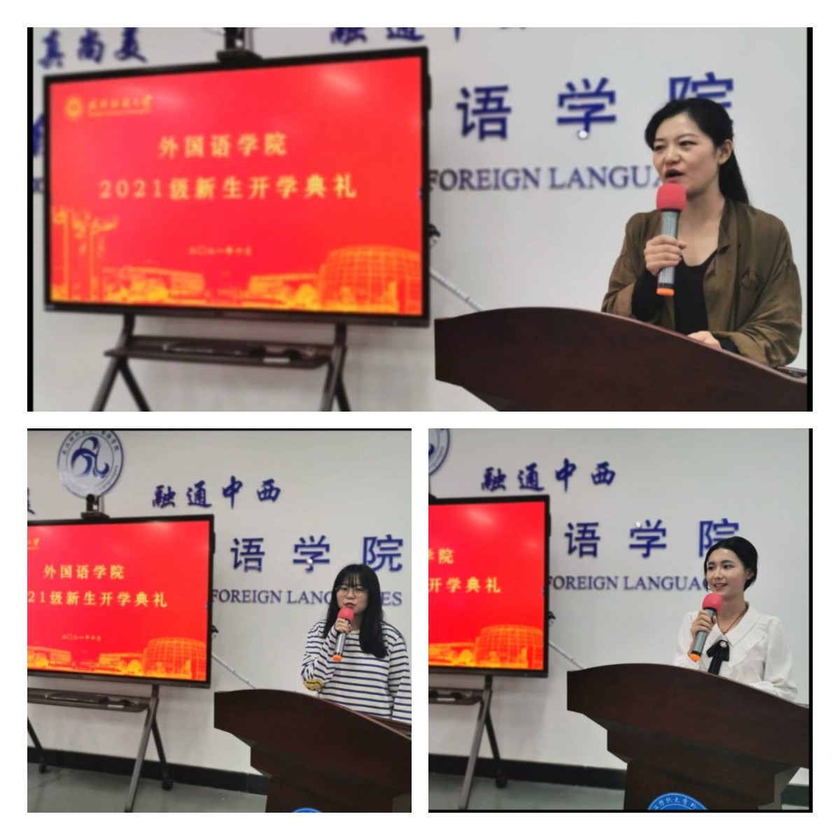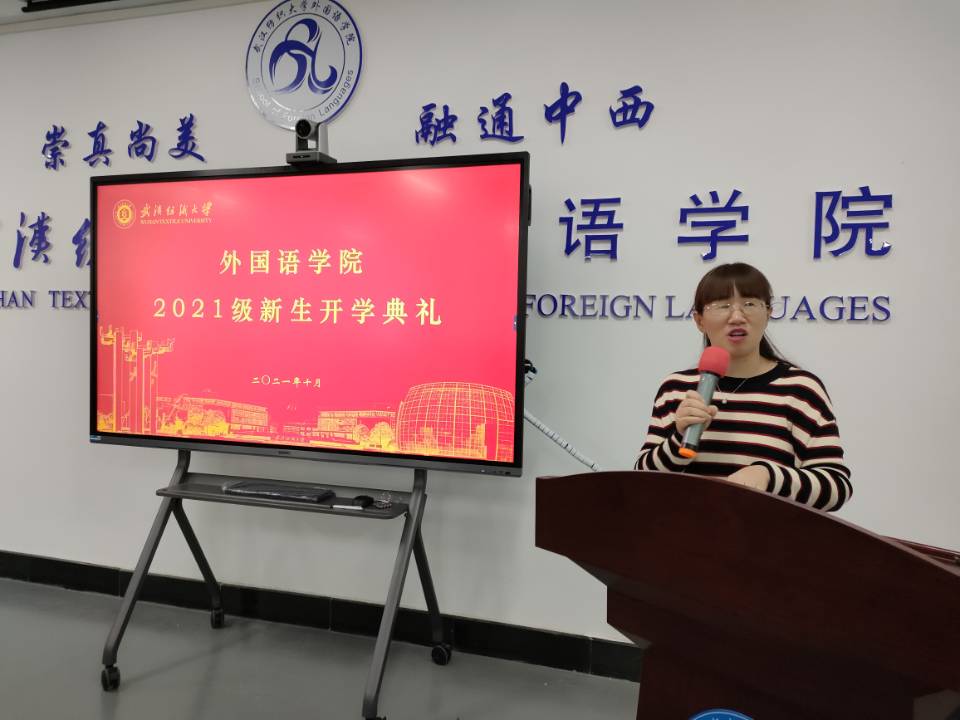 接着,院长助理、英语系主任陈韵如老师作为教师代表致辞,她表达了对新生的欢迎和鼓励,并对新生未来的发展给予了美好祝愿。2019级学生代表胡梦君用流利的英语分享了自己的个人成长经历和收获,并讲述了自己的学习心得,表达了自己对新生的祝福。2021级新生代表柯琬辰表达了对学校和学院的赞美之情,以及对大学生活的期待,她说:“大学生活即将开始,作为新时代青年,全体新生同学应该时常勉励自己,努力、自律,打好自身能力基础,共建美好祖国。”