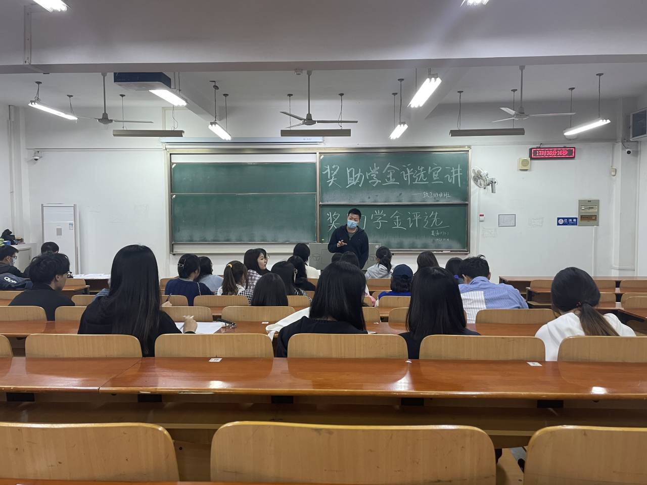 此次宣讲会上,辅导员向大家讲解了国家奖学金、国家励志奖学金、国家助学金以及校奖助学金评选的相关政策和程序,强调了各类奖助学金的资助对象、资格条件和评审流程,以及各类奖助学金的区别。辅导员还特别提醒同学们要注意获评奖助学金的资格条件,一定要热爱党和国家,遵守法律法规和学校各项规章制度,诚实守信、作风优良、积极勤奋,严禁弄虚作假、恶意破坏评审工作秩序。