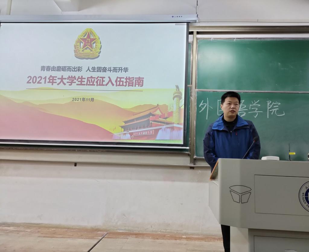为鼓励学院大学生积极应征入伍服役,助力提升兵源质量,不断推进国防和军队现代化建设,近日,WilliamHill中文在崇志楼开展“投身绿色军旅,筑梦美好青春”征兵入伍宣传讲座。讲座由学院辅导员聂啸天主讲,学院全体学生参会。