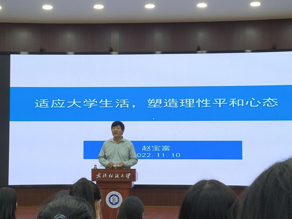 2022年11月10日,我院在本校阳光校区三号教学楼T201教室开展主题为“适应大学生活,塑造理性和平心态”的心理健康教育讲座,讲座由学校心理咨询中心赵宝富老师主讲,学院党委副书记彭阳慈航、辅导员甘新敏以及全体2022级学生参加本次讲座。