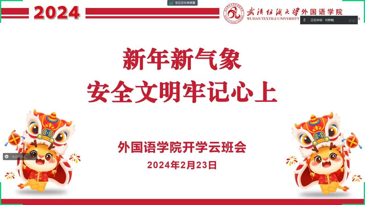 为迎接新学期的开始,确保同学们平平安安返校。2月23日,学院辅导员、班主任通过线上方式开展“新年新气象 安全文明牢记在心上”主题班会,师生云端相聚,做好开学提醒和准备工作。