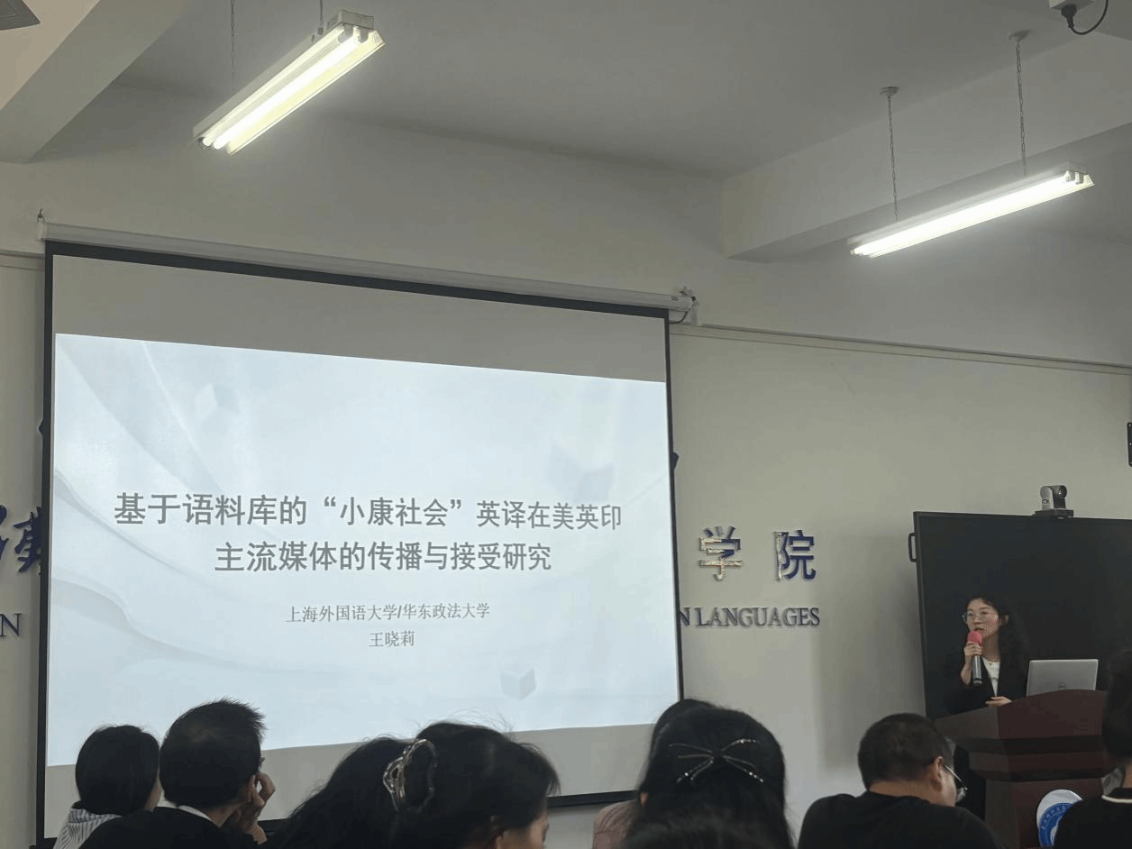 随后,王晓莉博士介绍了基于语料库的“小康社会”英译在美英印主流媒体的传播与接受研究,从报道话题分析、媒体对内涵的认知、译名的应用特征以及媒体所持态度这四个方面进行展开。