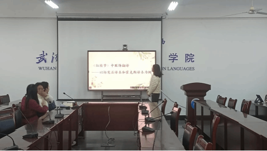 第三位汇报人梁康同学分享的主题是《红楼梦》中服饰翻译——以杨宪益译本和霍克斯译本为例。她通过译例对比分析了杨宪益和霍克斯对《红楼梦》中不同服装配饰的理解和阐释,最后点明只有兼取语义翻译和交际翻译、异化翻译和归化翻译之长,既重视源语文化,又兼顾译语读者,才能做好文化内容的翻译。