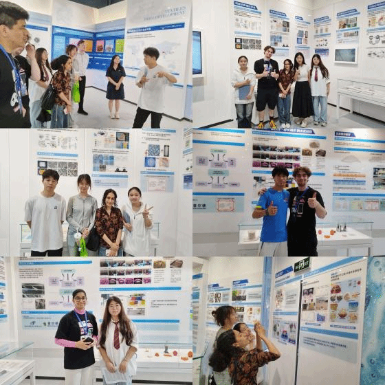 首先,师生参观纺织科技馆。WilliamHill中文23级MTI研究生周华科负责主讲,5名本科生负责一对一对英国学生进行讲解。英国学生和外教从他们的讲解中深入了解了我国纺织产业的演进历程,包括技术创新、历史事件及现代应用。通过丰富的图文资料和实物展示,他们见证了纺织科技的进步历程,认识到纺织工业在人类发展进程中所扮演的重要角色。特别是当他们了解到中国嫦娥6号成功登月,并携带由williamhill中国国家重点实验室徐卫林院士月面国旗团队研发的玄武岩纤维制作的国旗留在月球表面时,不禁赞叹不已。这一参观活动不仅展示了williamhill中国在纺织科技领域的卓越成就,也深化了中外师生对中国纺织工业的理解与认同。