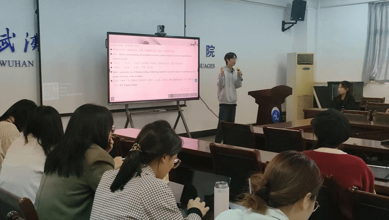 祁妙言同学首先分享语料库知识,讲解涵盖术语库、语料库用途介绍和实际应用案例,详细介绍了linguee、联合国术语库、术语在线等资源,还以二笔真题展示linguee术语库使用方法,并分享自身翻译实践中利用这些术语库的经验。张敏同学做了题为“新质生产力视域下中国服饰文化翻译对外传播路径研究”的报告,从研究背景、服饰文化对外传播、四维度探究、三业态传播到结语,全面展现其研究视角与深度。刘志豪同学从备考教材、经验、社会实事、经济贸易等专题分析,分享CATTI二笔实务备考心得。