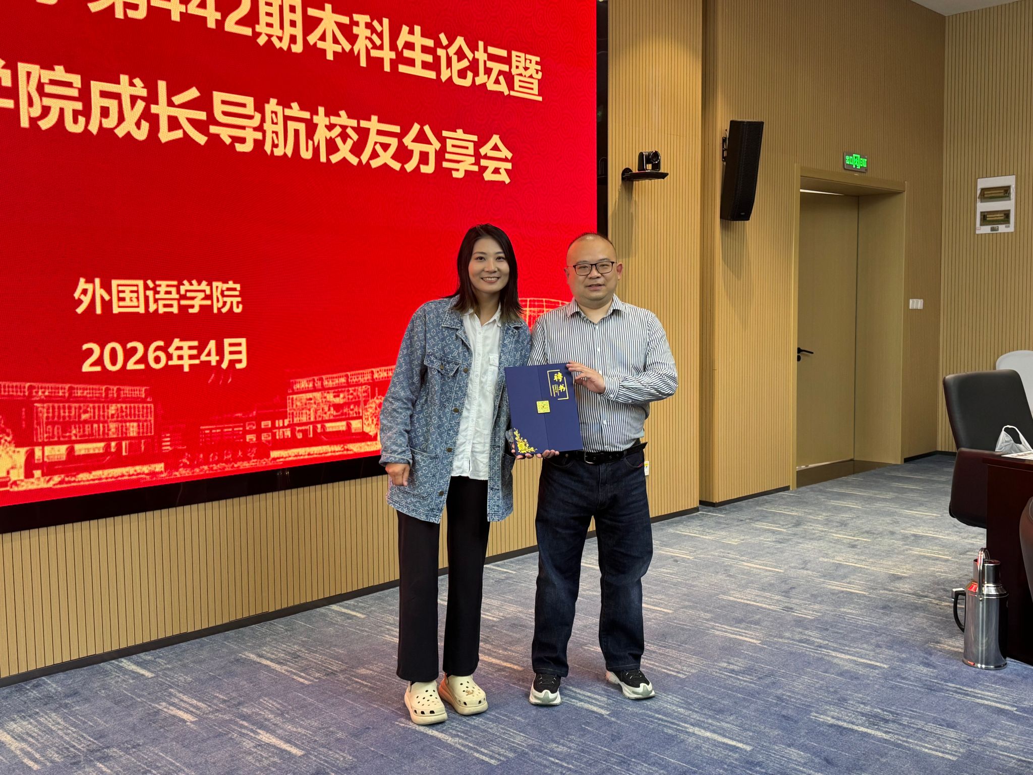 在互动环节中,同学们围绕跨文化实践、AI工具使用、考研方向选择等问题踊跃提问,周杨结合自身经历逐一解答,现场气氛活跃,掌声不断。最后,学院聘任周杨校友为成长导师。此次优秀校友分享会,既是一场经验的传递,更是一次精神的传承,既为WilliamHill中文学子搭建了与优秀前辈交流共进的桥梁,也以跨文化视野为青年学子点亮了成长航向,凝聚起奋进力量,为学院深耕语言人才培养、助力学子全面发展注入了持久动力。