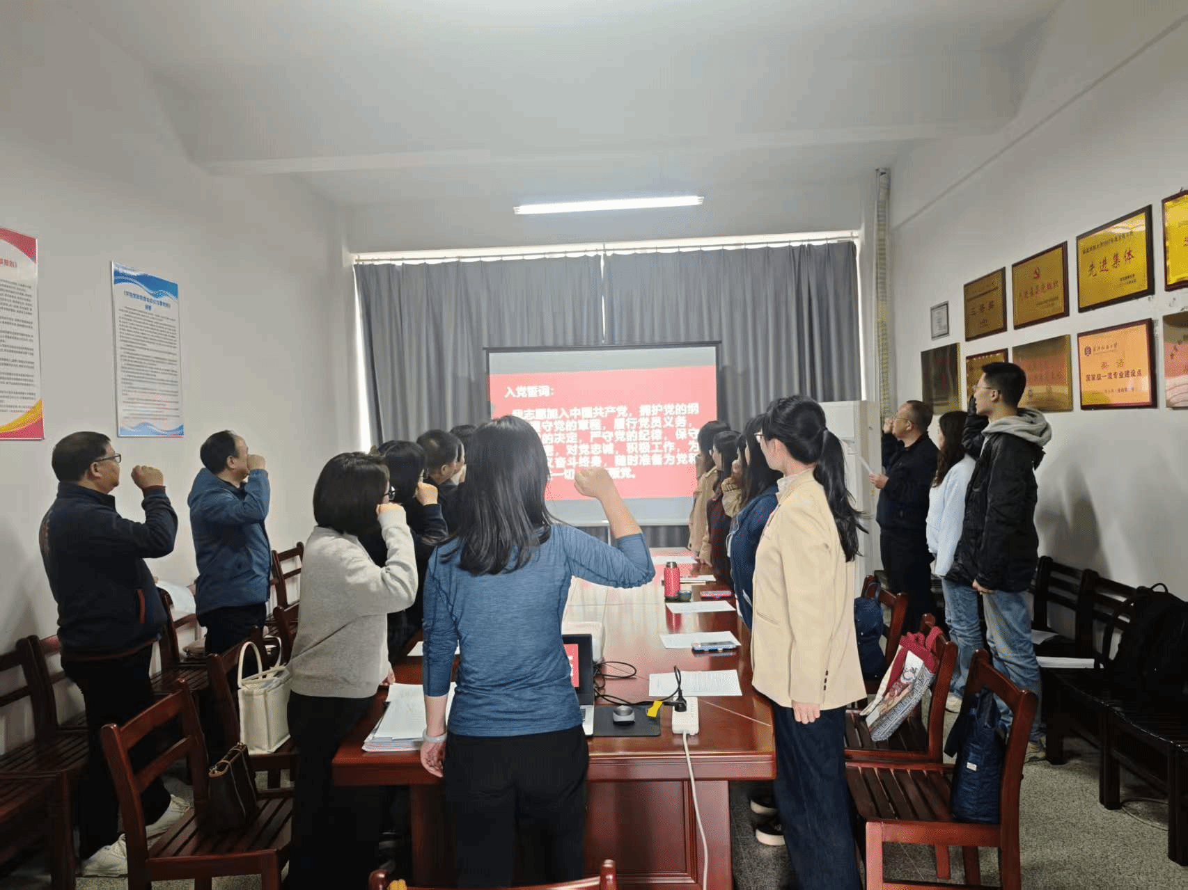 活动在庄严的国歌声中拉开帷幕。全体党员面向党旗重温入党誓词,铿锵誓言坚定初心使命;集体诵读《中国共产党章程》中党的基层组织基本任务,进一步明确基层党支部战斗堡垒作用与党员责任担当。
